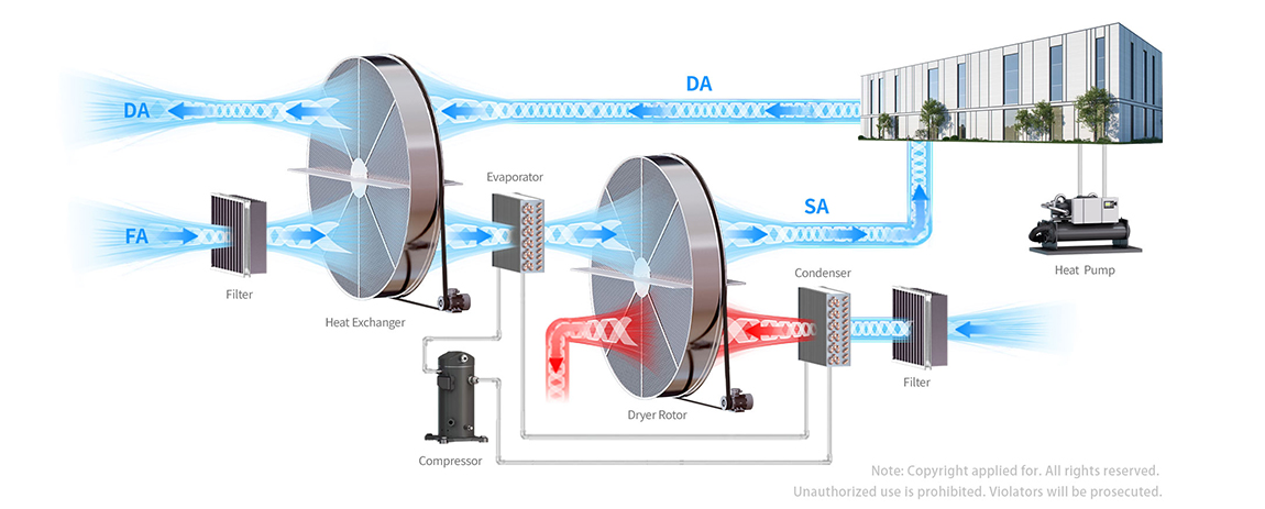 The with development technology from polymer material. The hot air discharged from condenser acted reacticaton heater,evaporating moisture remaing on the surface, The cop data from cooling system can reach to 7.5.